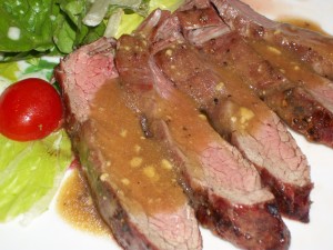 Grilled Flank Steak with Peppercorn Pan Sauce