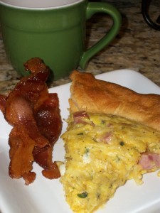 I had a ton of odds and ends in my fridge that needed to be used up, so I came up with this quick breakfast one Saturday morning. You can easily substitute the veggies that you have on hand. I hope you enjoy it.