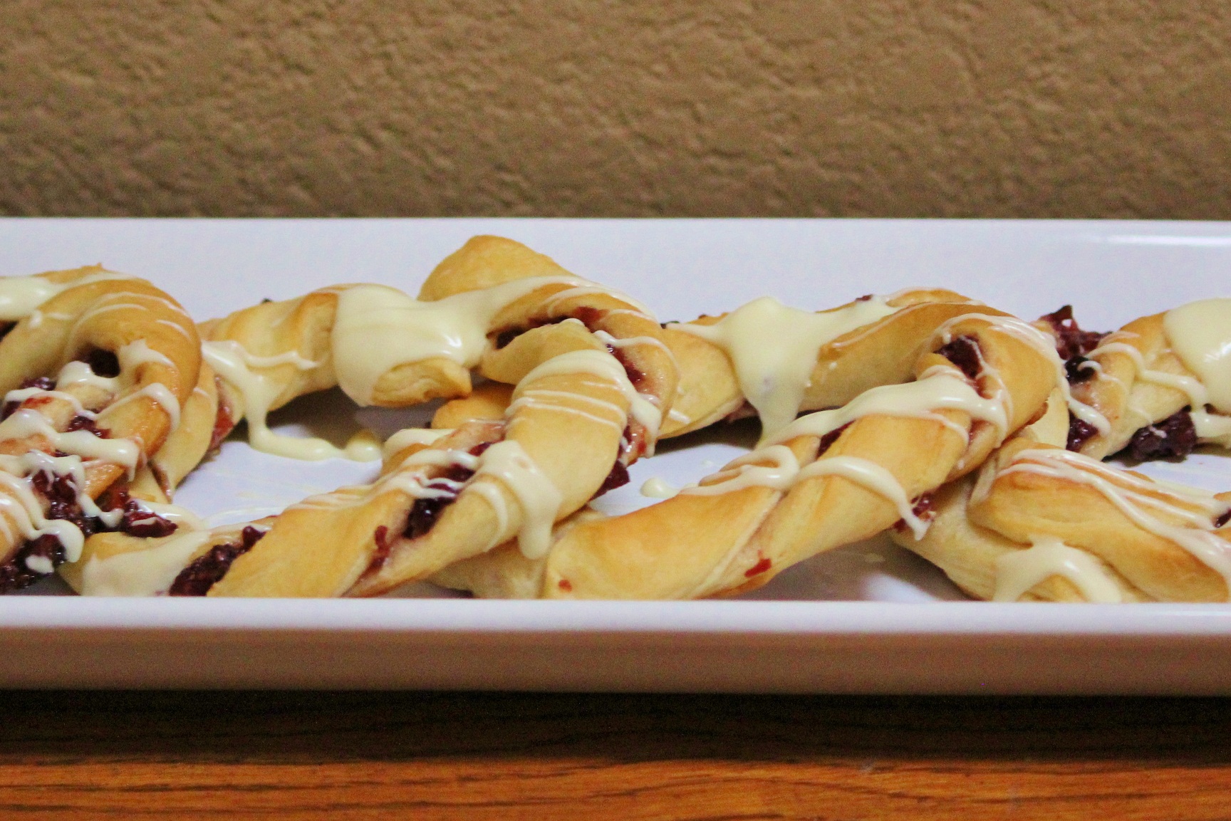 These cranberry and white chocolate wreath shaped pastries are the perfect sweet treat for brunch or a holiday dessert.