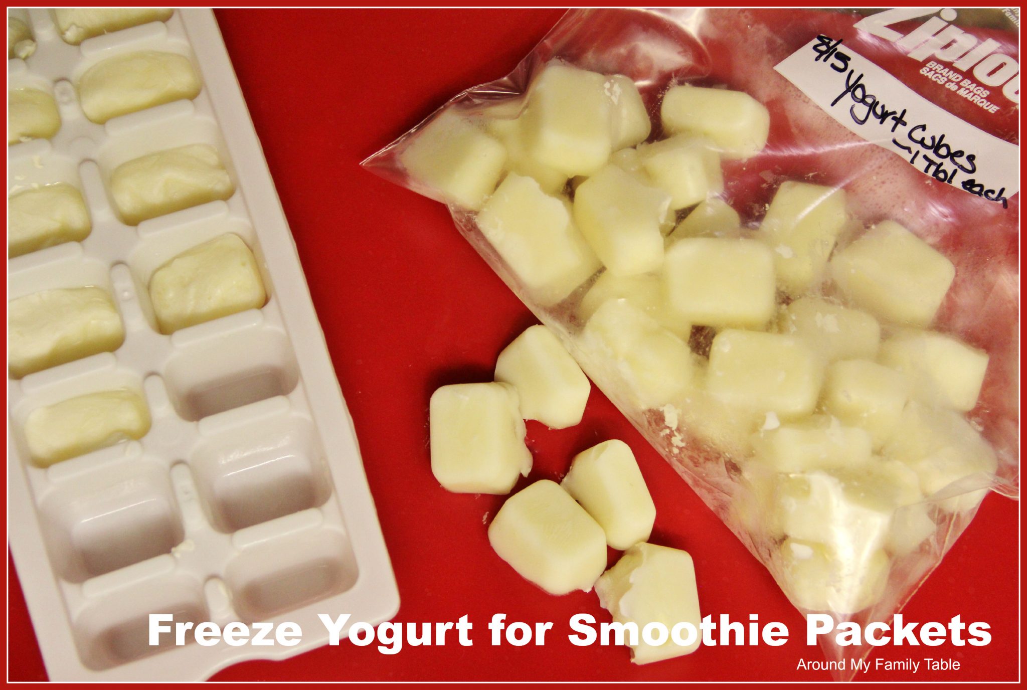 Like those yogurt smoothie packets? Freeze plain or vanilla yogurt in ice cube trays (about 1 tbls per section). Add 2 or 3 to your smoothie packet.