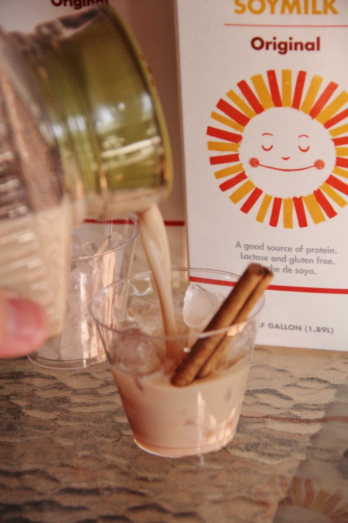 This year, I asked if I could do more. I took over a ton of food (trust me…all the recipes will be coming over the next couple weeks) and drinks. One drink that I took over was my Iced Soy Chai Tea. Some of the guys in the family, hate change and I wanted to see if I could win them over to soy milk with this drink. I make this same recipe for just myself and then keep it in the fridge all week. When it’s time for a quick breakfast or an afternoon pick-me-up, I just pour myself a glass! YUM! It’s perfect for a party too and makes enough for everyone to have a glass. Although, I guess I should have made more….I converted someone and he quickly became a fan and drank probably half of it.