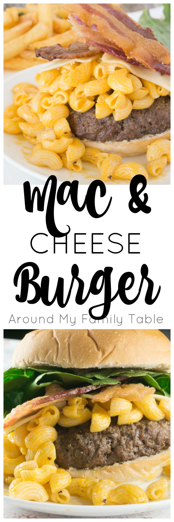 I’ve kicked up our plain ol’ cheeseburger to this colossal Mac & Cheese Burger. A perfectly grilled burger topped with my favorite macaroni and cheese and of course loads of bacon…it’s absolute perfection!