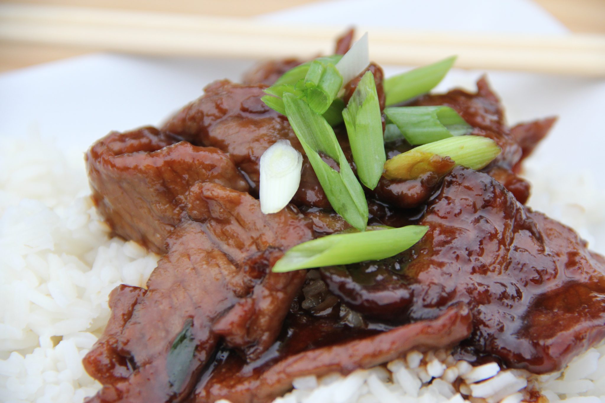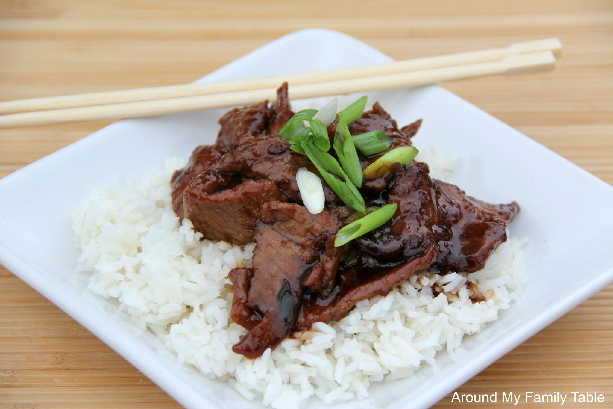 - Cook for one more minute, then remove the beef and onions with a slotted spoon to a serving plate. Serve over rice and garnish with a few fresh sliced green onions.